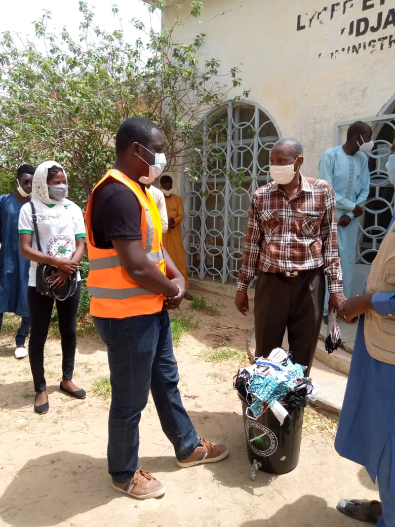 Dans le cadre de ses activités de lutte contre la Covid-19 au Tchad, la Synergie des Associations des jeunes Contre le Coronavirus a entamée une vaste opération de distribution des masques de protection, dispositifs pour le lavage des mains et quelques gestes de démonstrations au 8e arrondissement dans le lycée ouara et lycée de Ndjari puis le quartier SOS village et Blama tom d’où une sensibilisation de porte à porte a été faite.